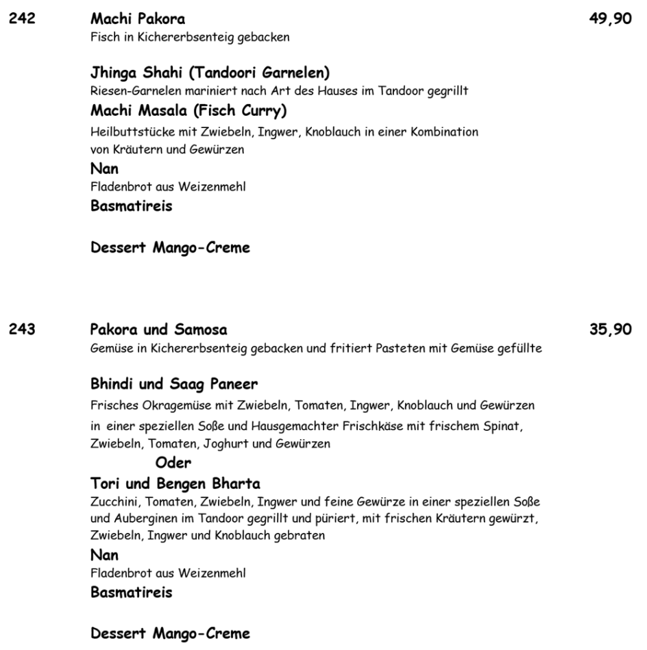 Wir versuchen die Speisekarte stets aktuell zu halten, jedoch sind uns kurzfristige Änderungen vorbehalten.